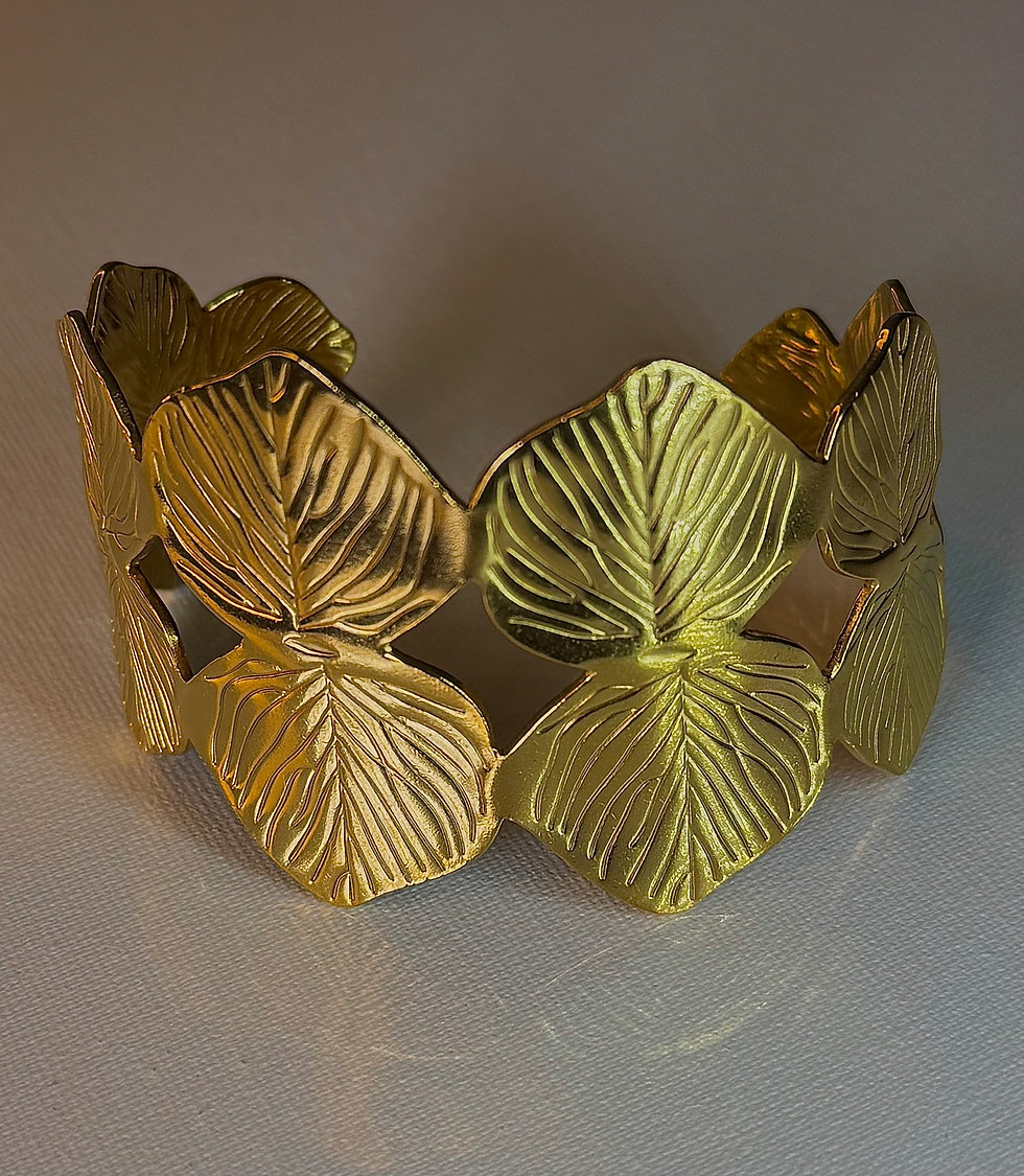 BRACELETE TREVO VAZADO AÇO INOX DOURADO